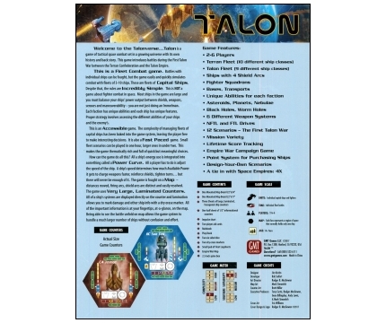Talon is a tactical game of space fleet combat between the Terran Confederation and the invading Talonthincanthanadu (Talon) Empire.