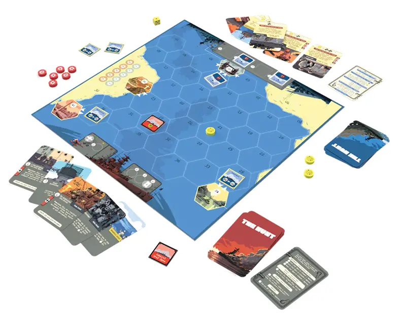 Den tyska spelaren försöker undvika upptäckt och sänka fem fraktskepp, medan britterna använder sin överlägsna flotta för att lokalisera och besegra fienden. Spänningen byggs upp genom hemliga rörelser och taktiska beslut där varje drag kan förändra spelets gång.