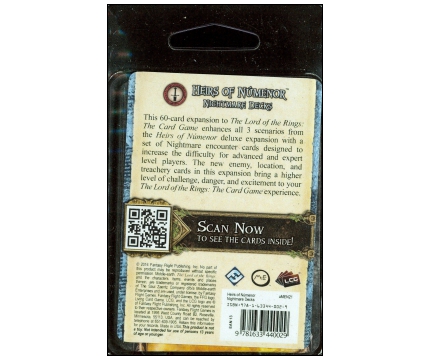 Heirs of Númenor Nightmare Decks is a single set of three twenty-card Nightmare Decks, one for each of the three scenarios from Heirs of Númenor, the second deluxe expansion for The Lord of the Rings: The Card Game,