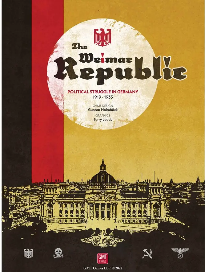 The Weimar Republic is a Card Driven Game of political struggle in interwar Germany. Four factions compete for dominance: the democratic Coalition, the Soviet-backed Communist Party, Hitler’s National Socialists, and the far-right Radical Conservatives.