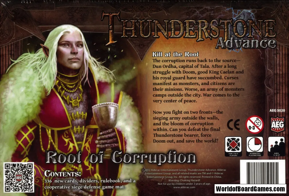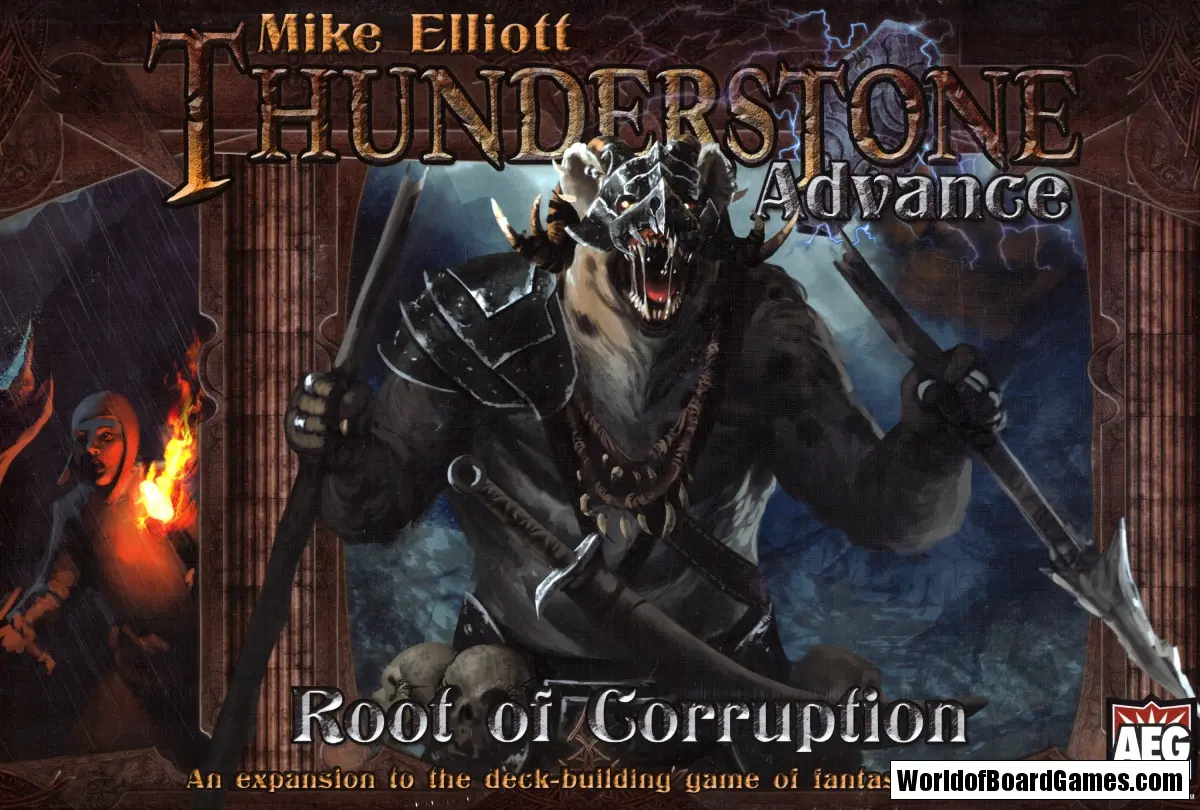 Thunderstone Advance: Root of Corruption, the second expansion for Thunderstone Advance, introduces new challenges and an all-new way to play: co-op! It also features ruinous sin incarnates, vicious scavenger gnolls, thrall summoners to bring back memorable foes, seven new heroes, six new monster groups, fifteen new village cards, and a new poster map board that creates options for co-op play using existing cards and rules! What's more, all Ambusher cards from Towers of Ruin and Caverns of Bane have been reprinted with updated graphics to increase visibility.
