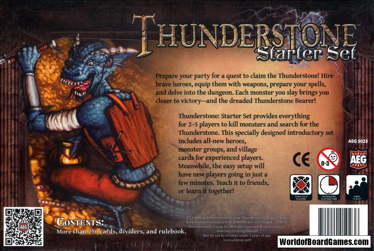 Thunderstone är ett kortbyggarspel där spelarna rekryterar hjältar, rustar dessa för strid och beger sig in i en grotta fylld med monster att dräpa eller bli dräpta av. Monstren belönar spelarna med guld, poäng och erfarenhet att göra hjältarna starkare så de orkar hela vägen fram - i jakten på Thunderstone-reliken.