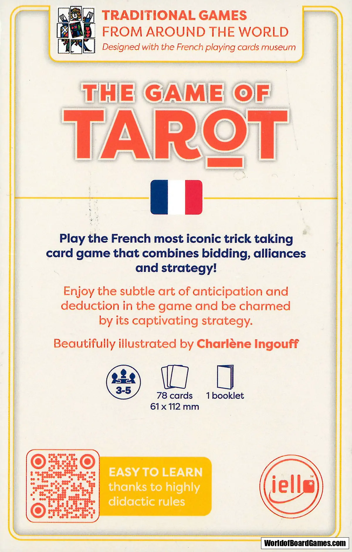 Tarot is played over several rounds, during which players accumulate points. The player with the most points wins the game. On your turn, play 1 card from your hand. When all players have played their cards, the highest card wins: this is called a “trick”! Win the most important cards to achieve the expected number of points, or prevent your opponents from doing so.