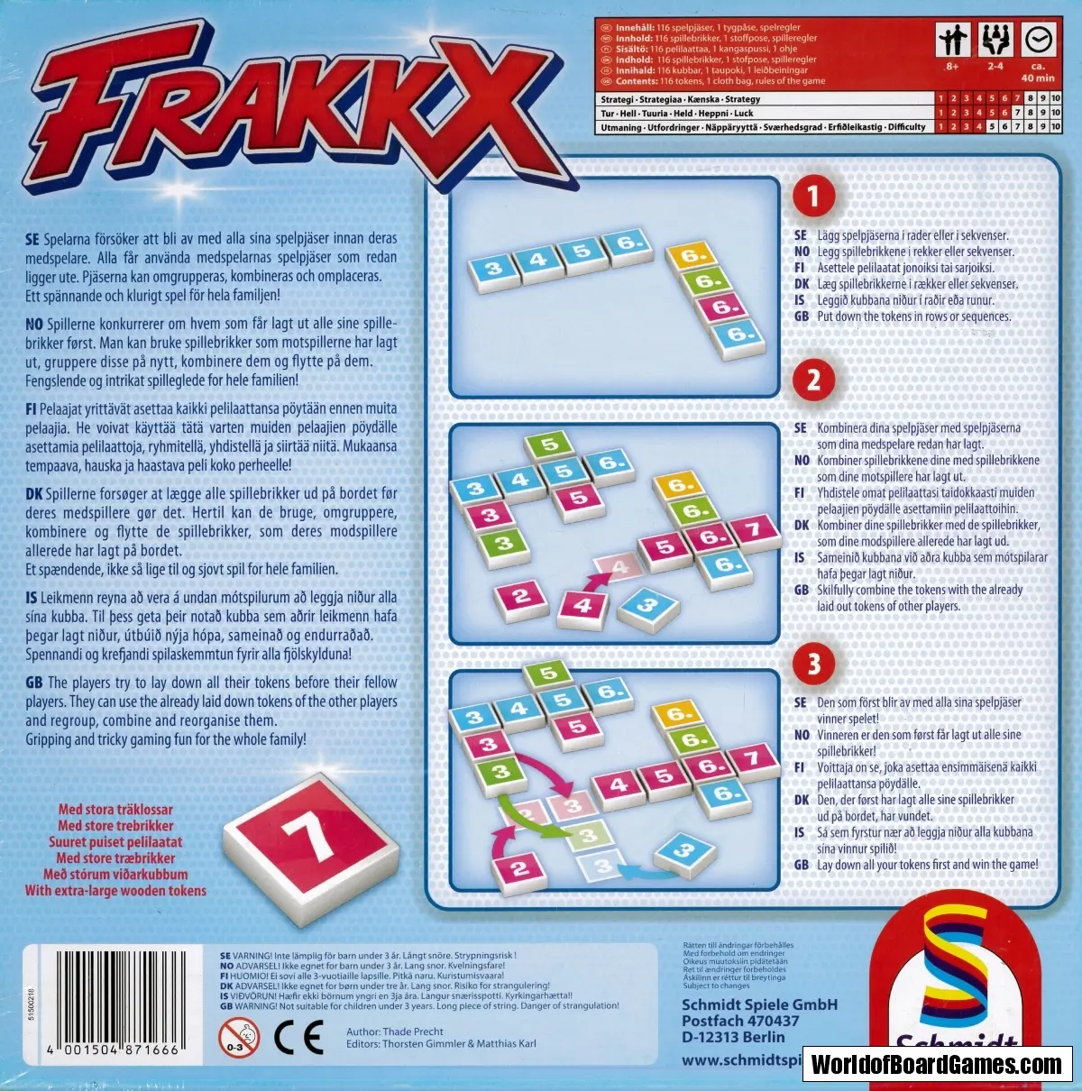 The players try to lay down all their tokens before their fellow players. They can use the already laid down tokens of the other players and regroup, combine and reorganise them. Gripping and tricky gaming fun for the whole family!