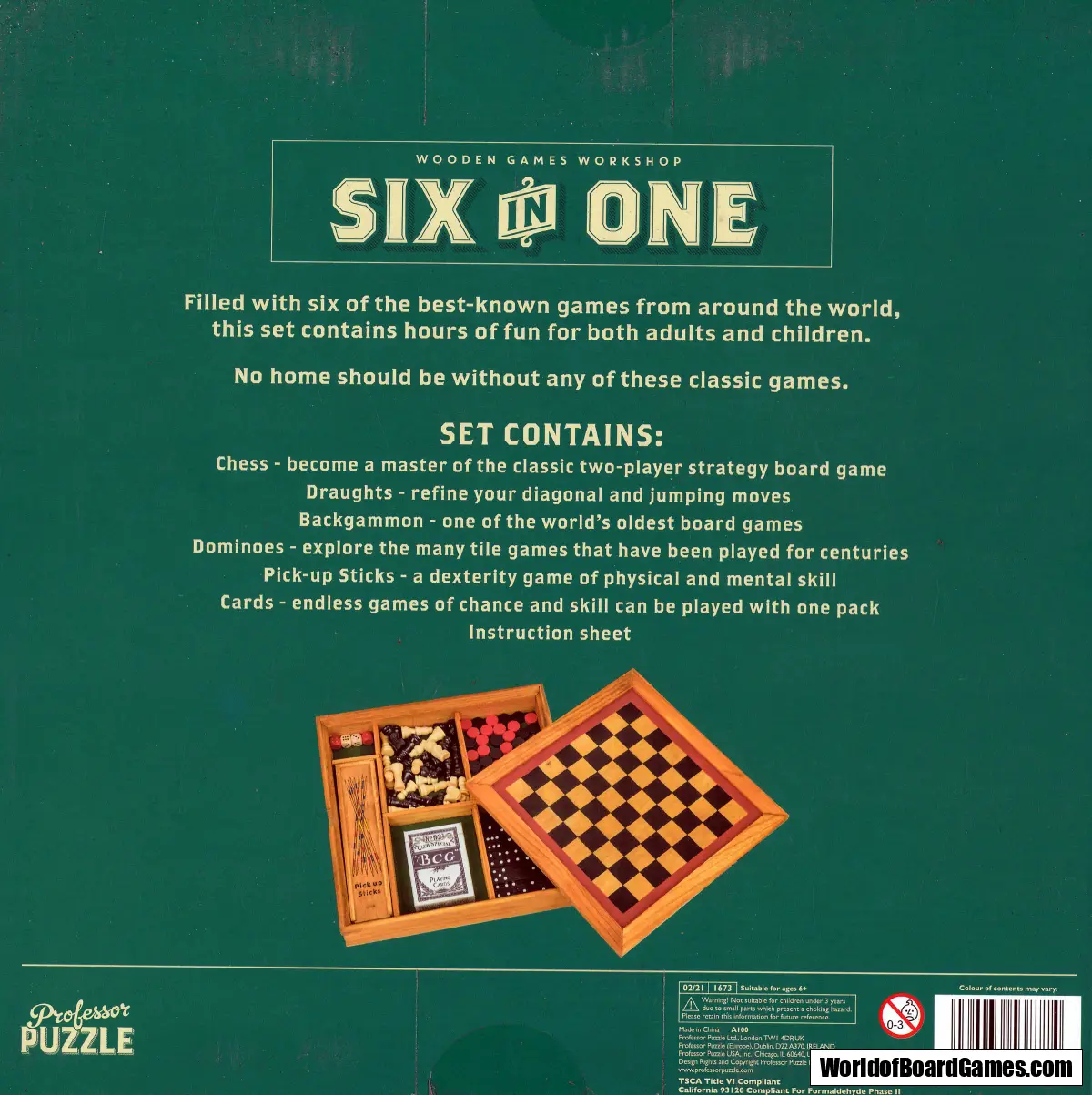 The ultimate board game compendium from Professor Puzzle. With everything you need to play backgammon, chess, draughts, pick-up sticks, cards and dominoes, this is a must-have for any games cupboard and is guaranteed for hours of family fun.