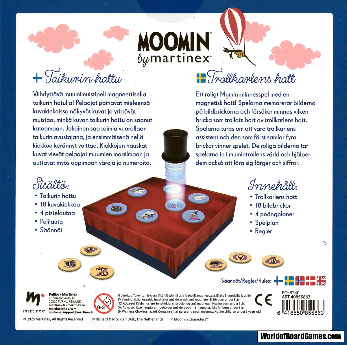Ett roligt Mumin-minnesspel med en magnetisk hatt!