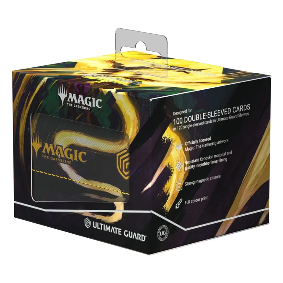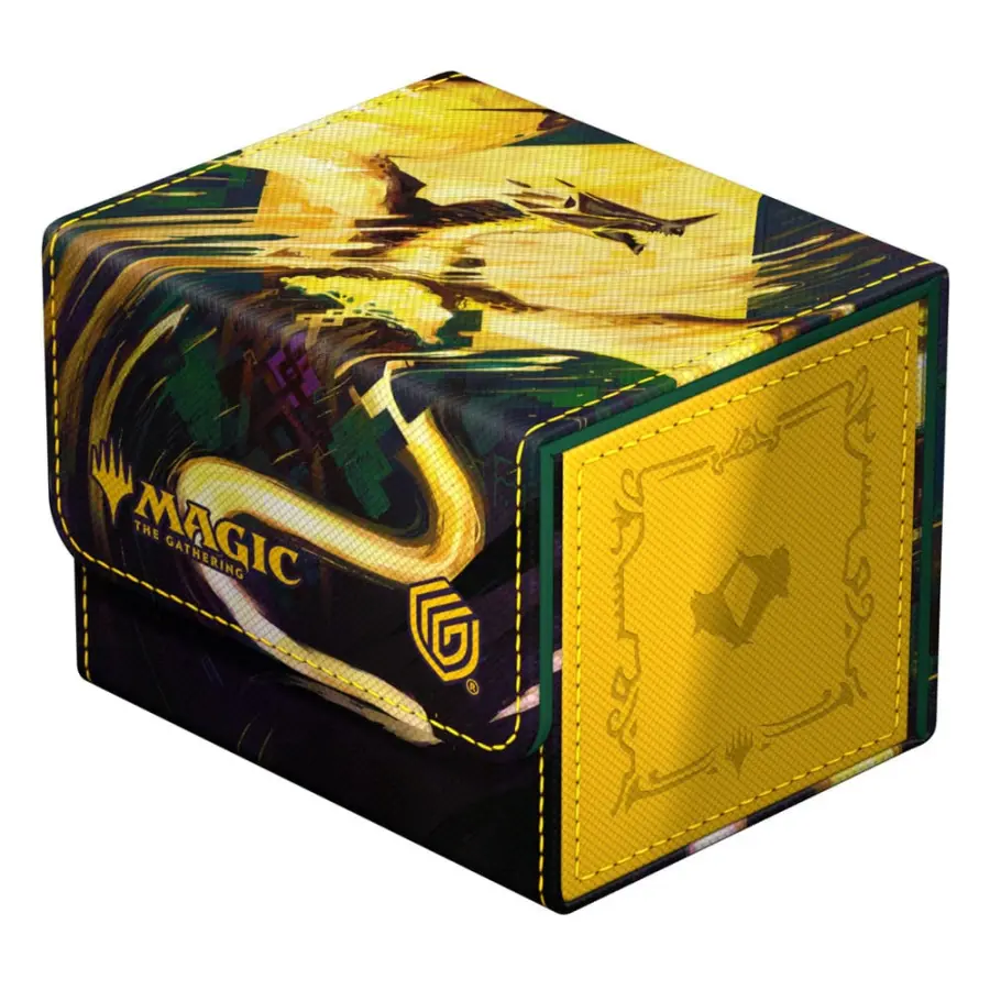 The Sidewinder 100+ made from durable Xenoskin material holds up to 100 double-sleeved or 120 single-sleeved cards, which are kept secure in the deck box thanks to a strong magnetic closure and soft microfiber interior. The sturdy, high-quality Xenoskin surface of the Sidewinder is printed in full color with officially licensed artwork from Magic: The Gathering’s Tarkir: Dragonstorm set.
