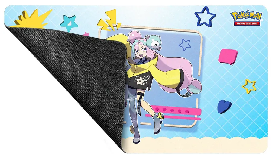 The Iono and Bellibolt playmat for Pokémon features vibrant, full-color artwork of the Levincia Gym Leader and her signature Pokémon. Made with a soft fabric top to reduce damage to cards during play and a non-slip rubber backing to keep the playmat from shifting during use, playmats enhance the gameplay experience. With dimensions of approximately 24 in. x 13.5 in., a playmat also makes an excellent oversize mousepad for home or office.