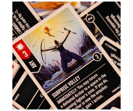 Combat is resolved quickly by comparing attack and defense cards. However, each card's unique effects and a simple but deep timing system lead to interesting decisions each time. The game also features an updated version of the line-of-sight system from Tannhäuser for ranged attacks and area effects.