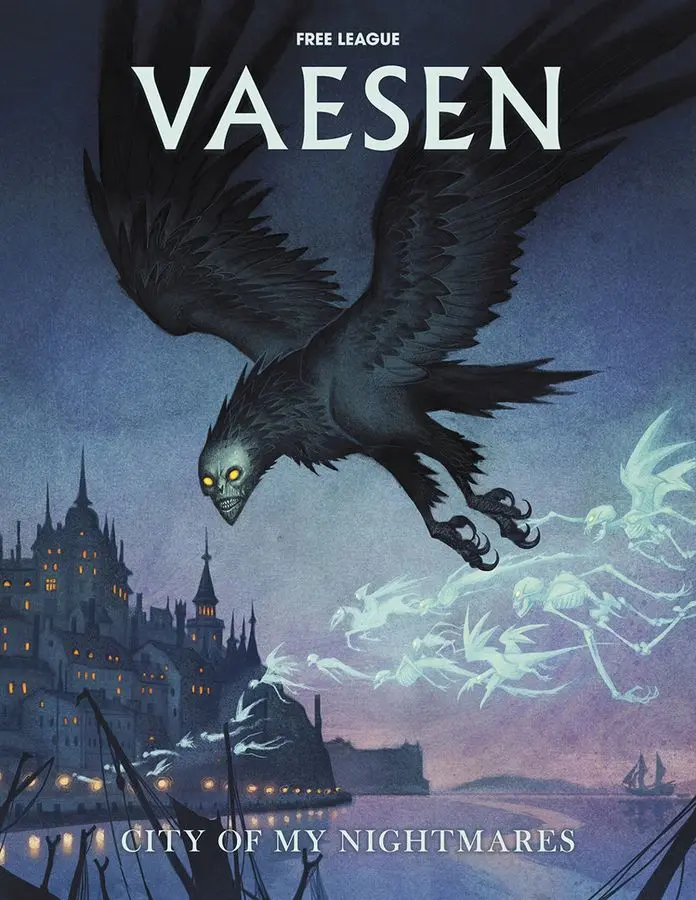 Welcome to City of My Nightmares for the Vaesen roleplaying game. This four-part campaign shifts the focus from the dark forests of the countryside to the bustling city and the vaesen lurking in its alleys. It also gives players the chance to experience mysteries that deviate slightly from the established format in terms of time, space, and structure.