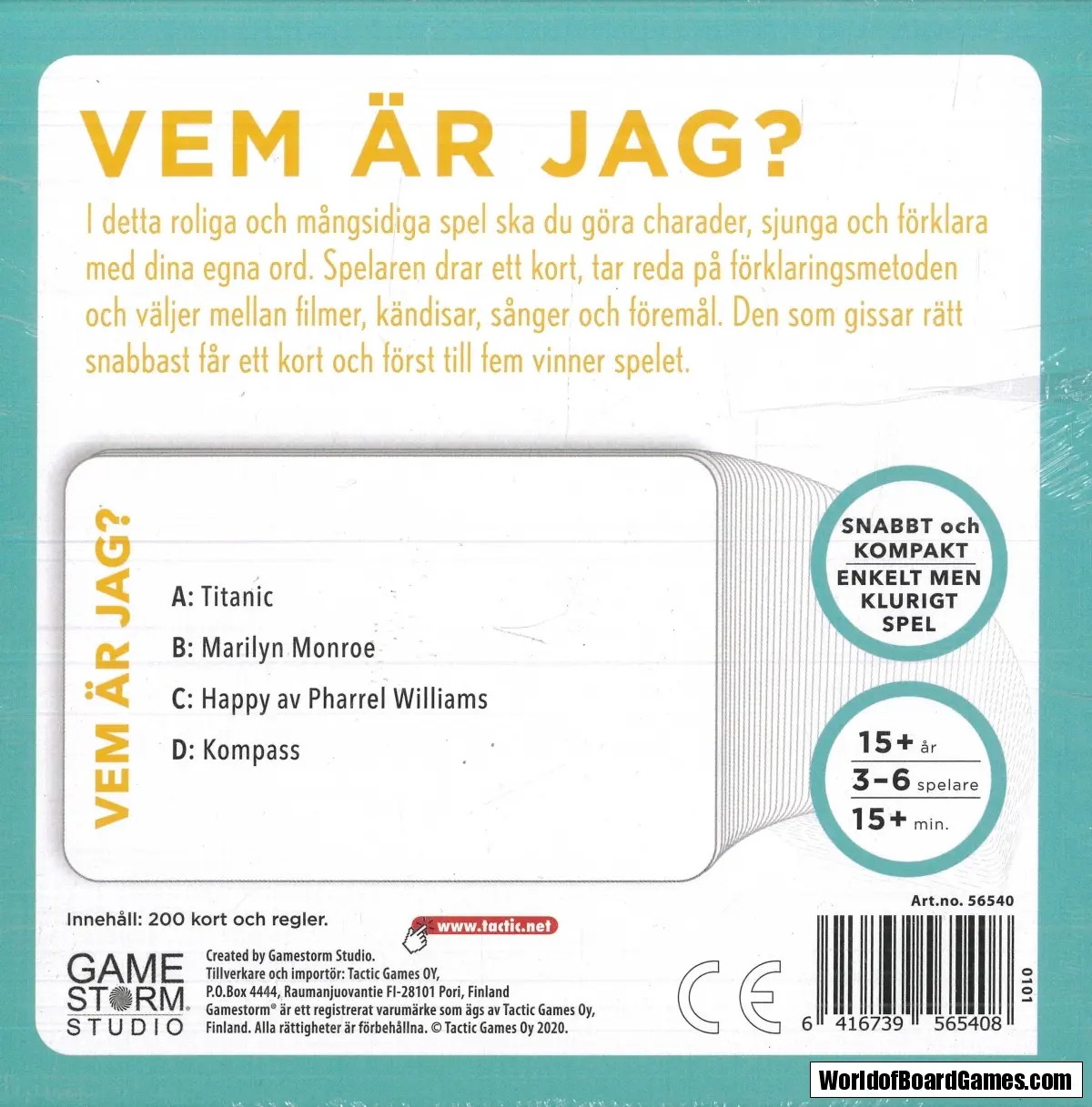 I detta roliga och mångsidiga spel ska du göra charader, sjunga och förklara med dina egna ord. Spelaren drar ett kort, tar reda på förklaringsmetoden och väljer mellan filmer, kändisar, sånger och föremål. Den som gissar rätt snabbast får ett kort och först till fem vinner spelet.