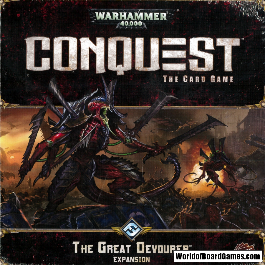 The Great Devourer is the first deluxe expansion for Warhammer 40,000: Conquest, and it introduces a brand-new faction: the Tyranids! Two Tyranids warlords lead these horrific creatures into battle, each offering a very different play style. In addition to these warlords and their signature squads, you’ll find a host of new units, supports, events, and attachments to aid the Tyranids, including an entirely new type of unit, the synapse unit. The Tyranids aren’t the only ones to benefit from this expansion, however. Every other faction must make its stand against the Great Devourer in the Traxis sector, and brand-new unique characters help them to battle the Tyranid threat.
