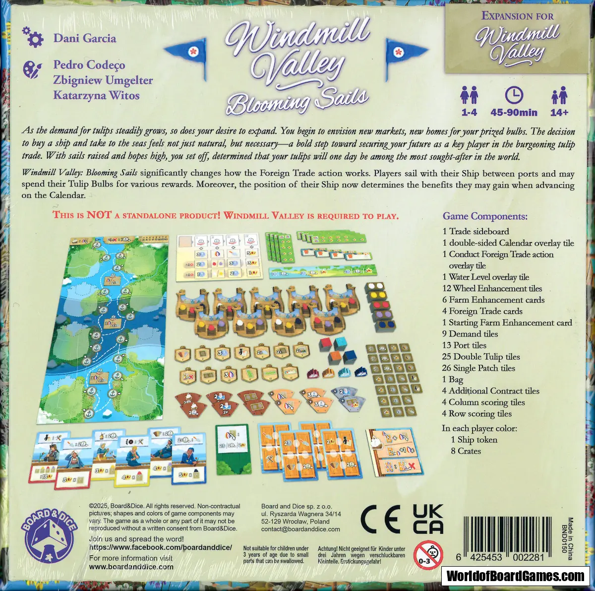 Windmill Valley: Blooming Sails förändrar avsevärt hur handlingen Conduct Foreign Trade fungerar. Spelarna seglar nu med sitt skepp mellan hamnar och kan använda sina tulpanlökar för att få olika belöningar. Dessutom avgör skeppets position vilka fördelar de kan få när de avancerar på kalendern. Kalendern har också uppdaterats och låter spelarna välja om de vill använda den vanliga eller expertvarianten.