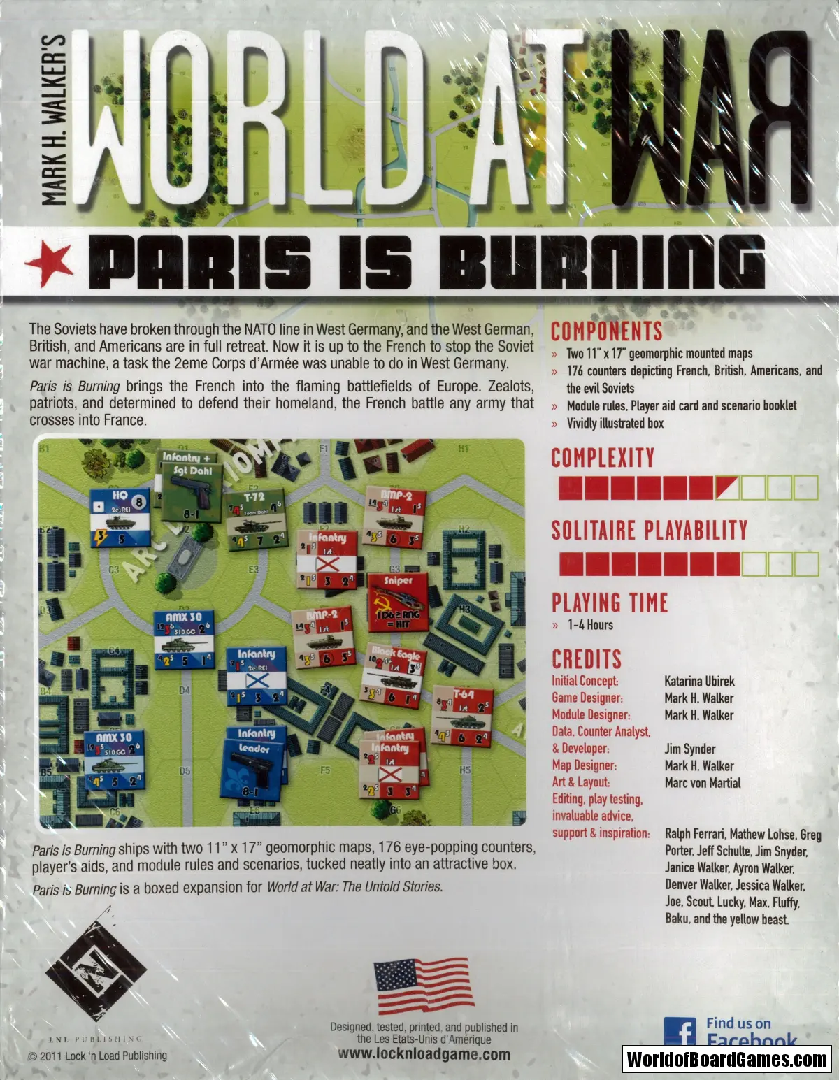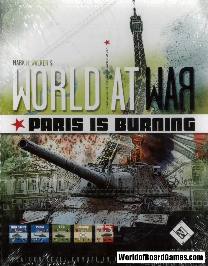 Paris is Burning brings the French into the flaming battlefields of Europe. Zealots, patriots, and determined to defend their homeland, the French battle any army that crosses into France. Paris is Burning ships with two 11” x 17” geomorphic maps, 176 eye-popping counters, player’s aids, and module rules, all tucked neatly into an attractive box. Paris is Burning is an expansion for World at War: The Untold Stories.