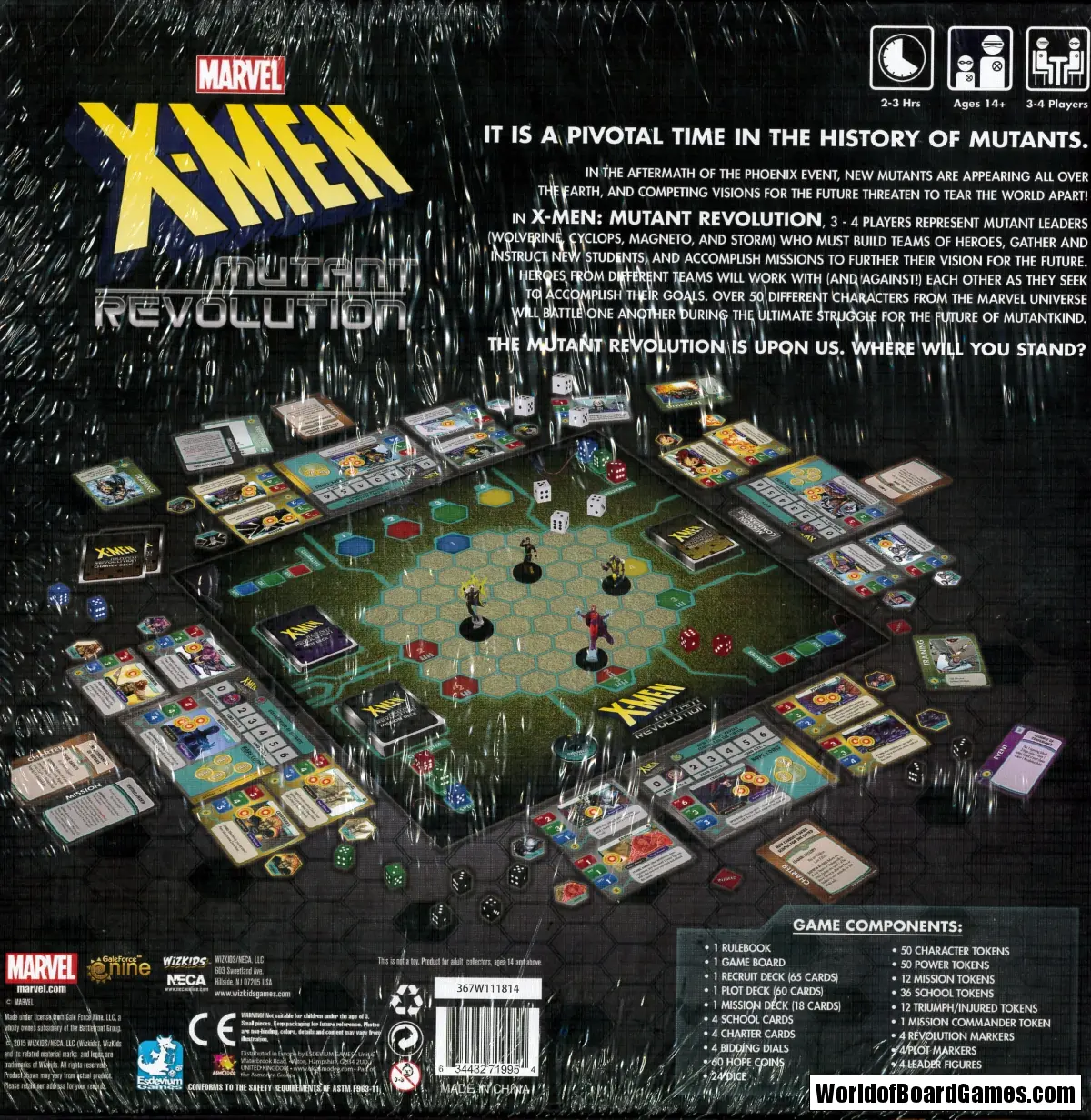 X-Men: Mutant Revolution allows you to play as classic X-Men characters — including Wolverine, Cyclops, Magneto, and Storm — as they lead their school against its rivals. In the game, 3-4 players will recruit heroes and students, training each team and sending them on missions to spread your vision for mutants to the world.