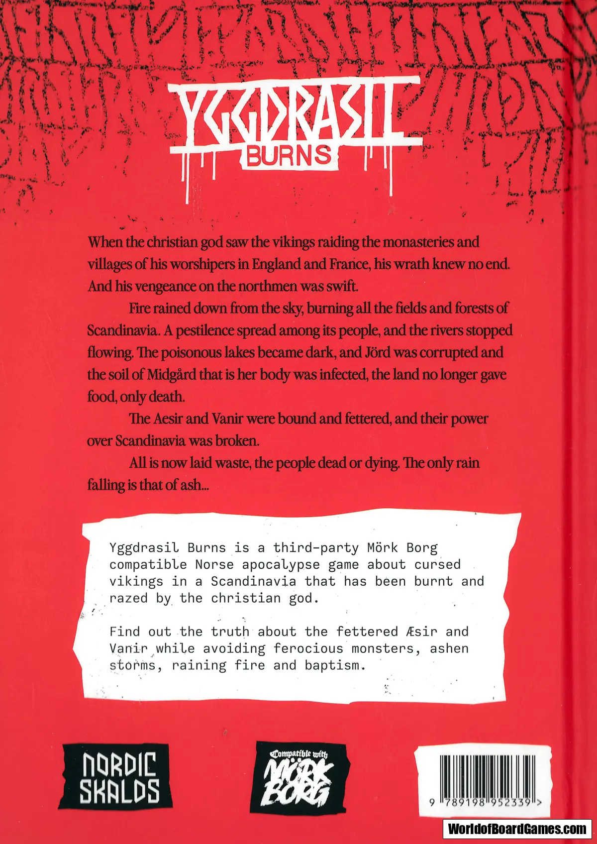 Yggdrasil Burns är ett mörkt rollspel i ett vikingatida post-apokalyptiskt Skandinavien där den kristne guden bränt och förstört världsträdet Yggdrasil som hämnd för vikingarnas räder mot kristna byar och kloster i England och Frankrike. Nordens jord har förvandlats till aska, och floderna är giftiga.