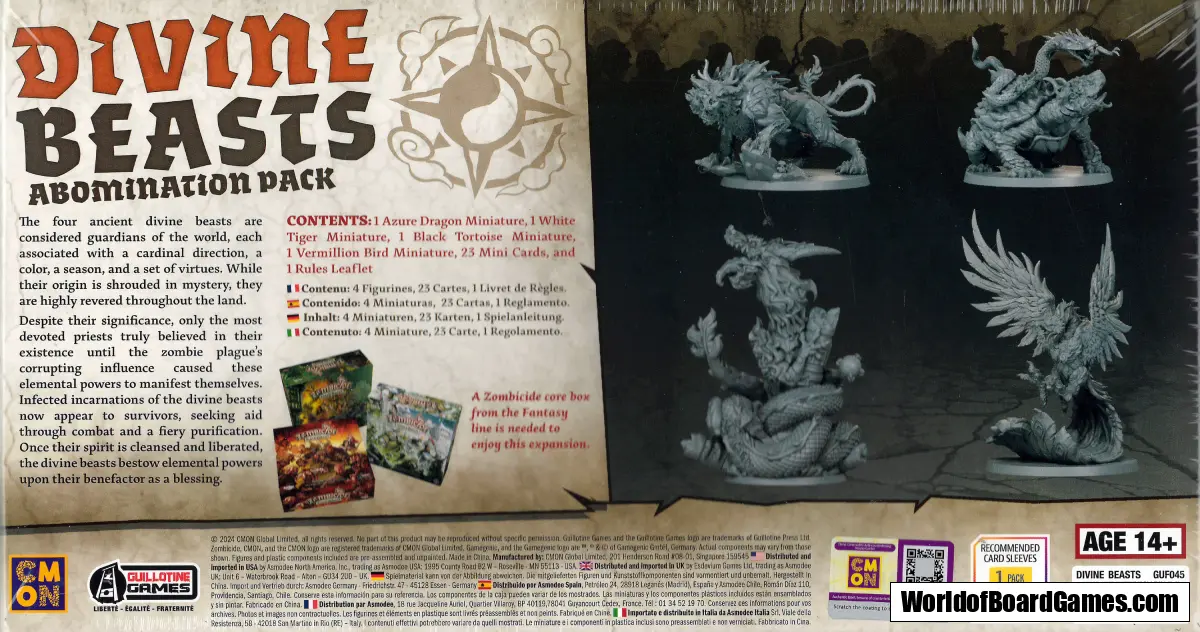 The Divine Beasts set contains 4 different Abominations based on mythical creatures that bring a new level of challenge to your Zombicide games.